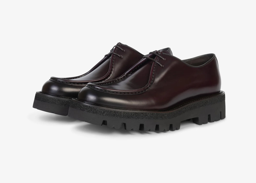 Anche Barrett Shoes propone numerosi modelli di calzatura con suola a carrarmato, come l’anfibio in vitello spazzolato e la linguetta di cervo con punta arrotondata che, con il suo stile grintoso e trasversale, si rivela perfetto per outfit invernali casual chic. O come il nostro mocassino in vitello anticato: un modello unico, caratterizzato da dettagli di sublime fattura che non può mancare nel guardaroba dell’uomo che desidera una sinergia perfetta tra classico e audace. E ancora, come la derby in morbidissimo vitello martellato e anticato a mano con puntale decorato, di colore marrone.