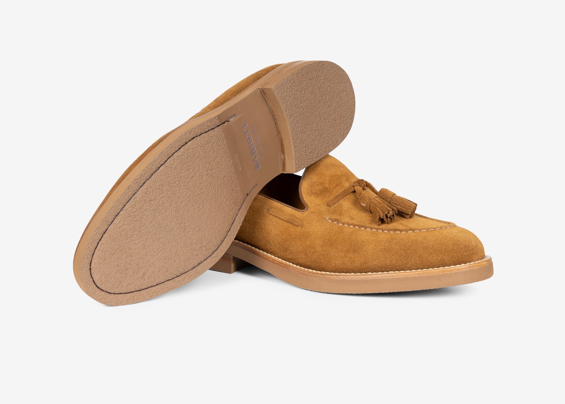 Iconico mocassino in suede con nappine e la cucitura su vaschetta.