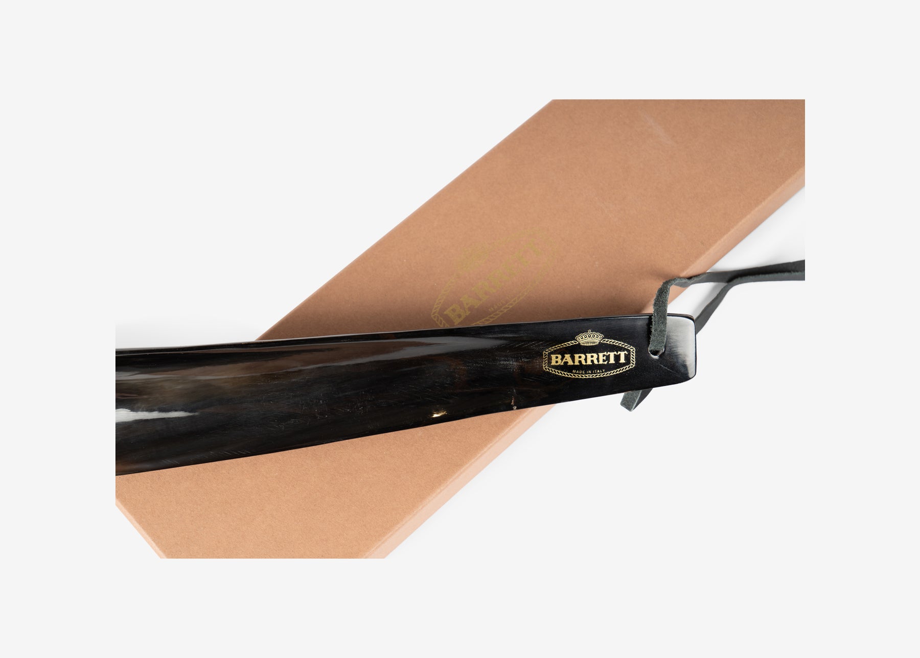 Vero corno, lavorato a mano. Questo calzascarpe è dotato di una linguetta in pelle per una maggiore comodità e di logo Barrett. Un regalo perfetto e un ottimo modo per trattare le vostre scarpe. Lunghezza del prodotto 30 cm.