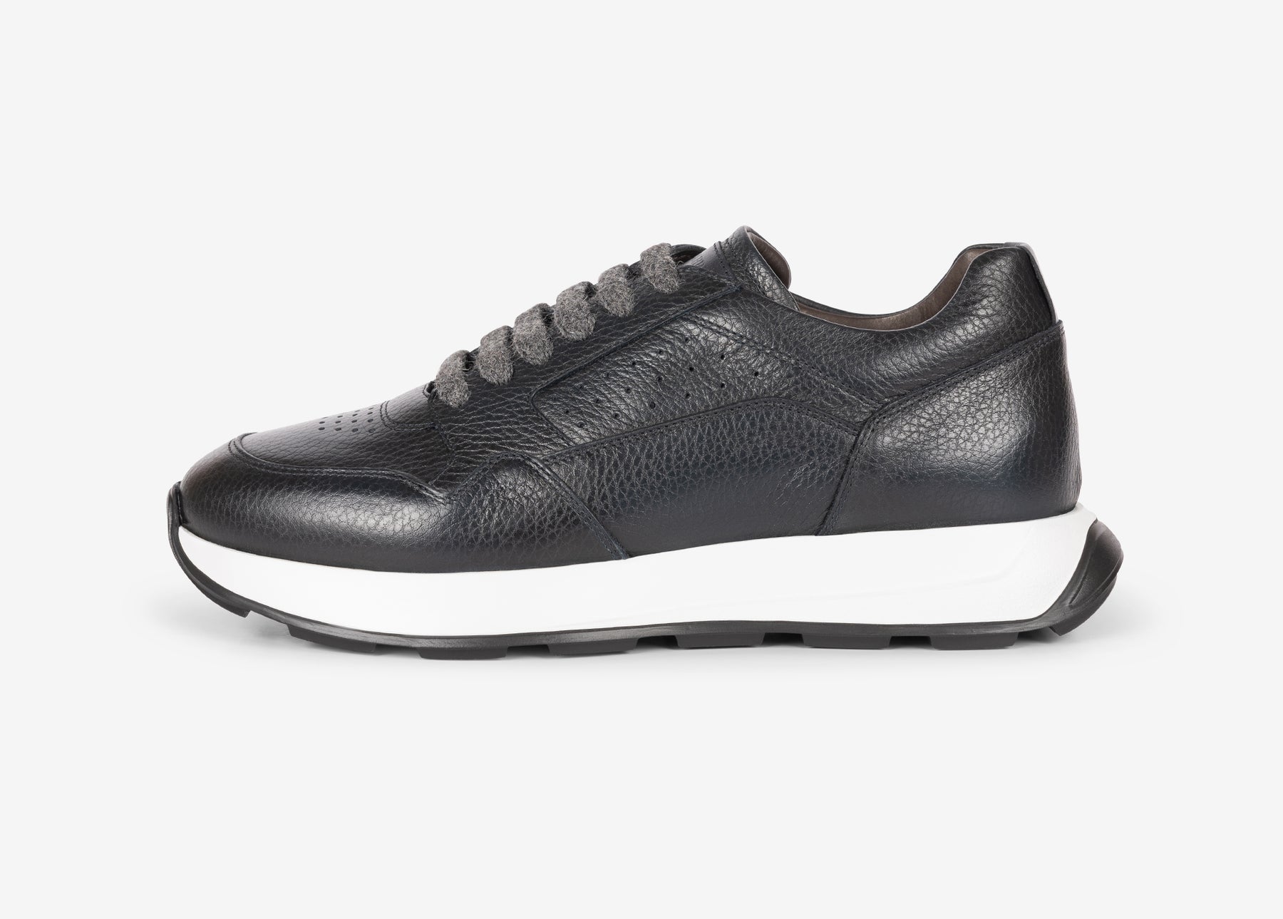Sportiva, innovativa e dal gusto moderno. Un modello di ispirazione running ultraleggera con tomaia realizzata in morbidissimo vitello bottalato. Presenta la suola alta in gomma il che dona alla scarpa comodità e praticità.
