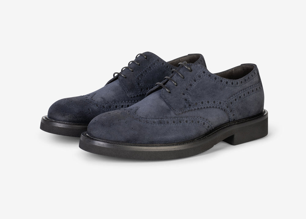Brogue Derby shoe in suede in blue