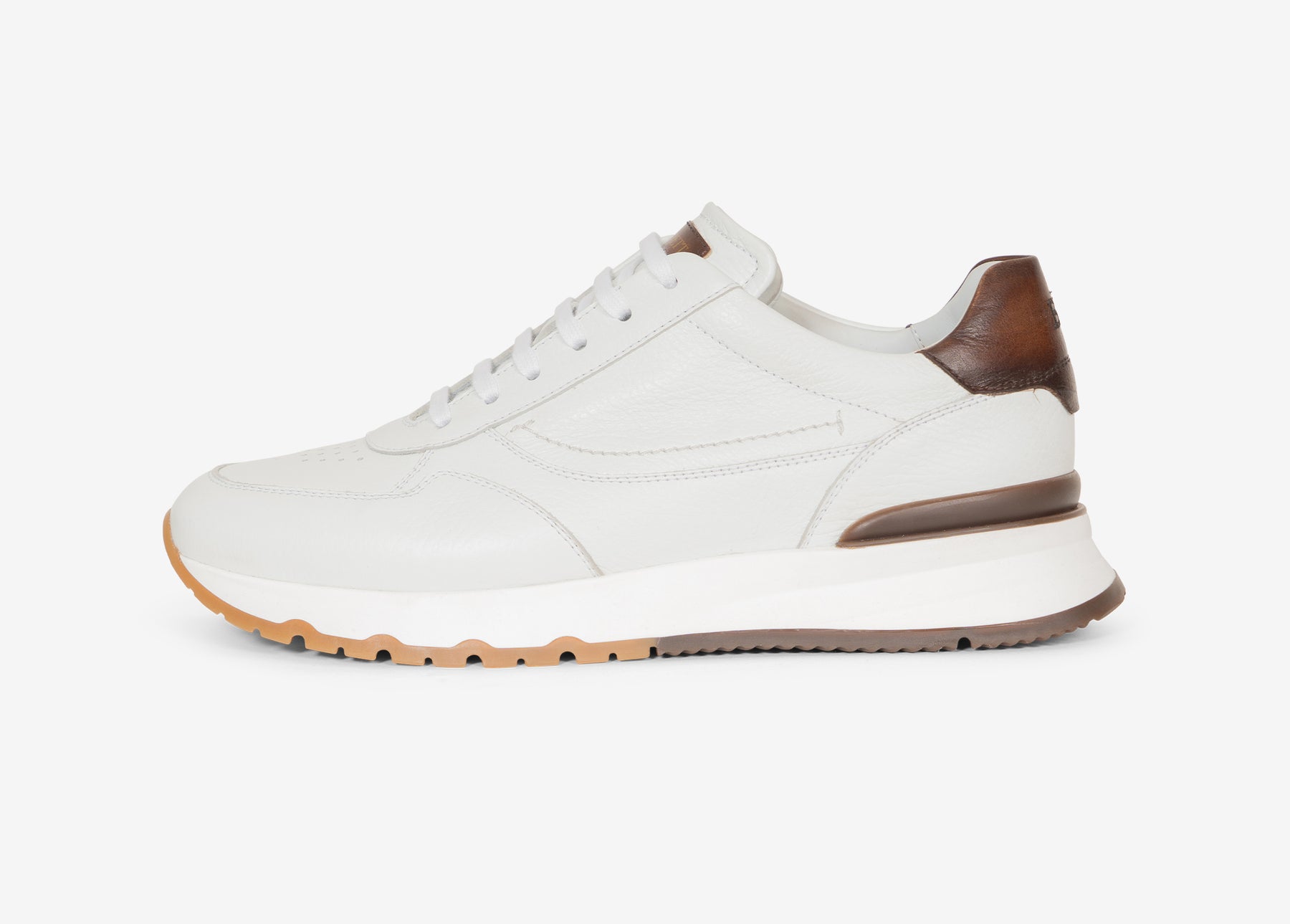 Running sneaker in white hammered leather